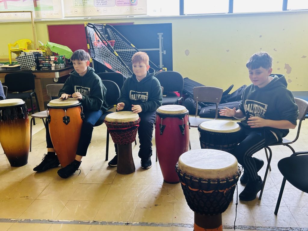 Drumming – 6th Class June 17, 2025 Our 6th Class are really enjoying their drumming programme with Urs Wenk, from Drum Dance Ireland. Each session incorporates drumming, percussion skills and some dance.