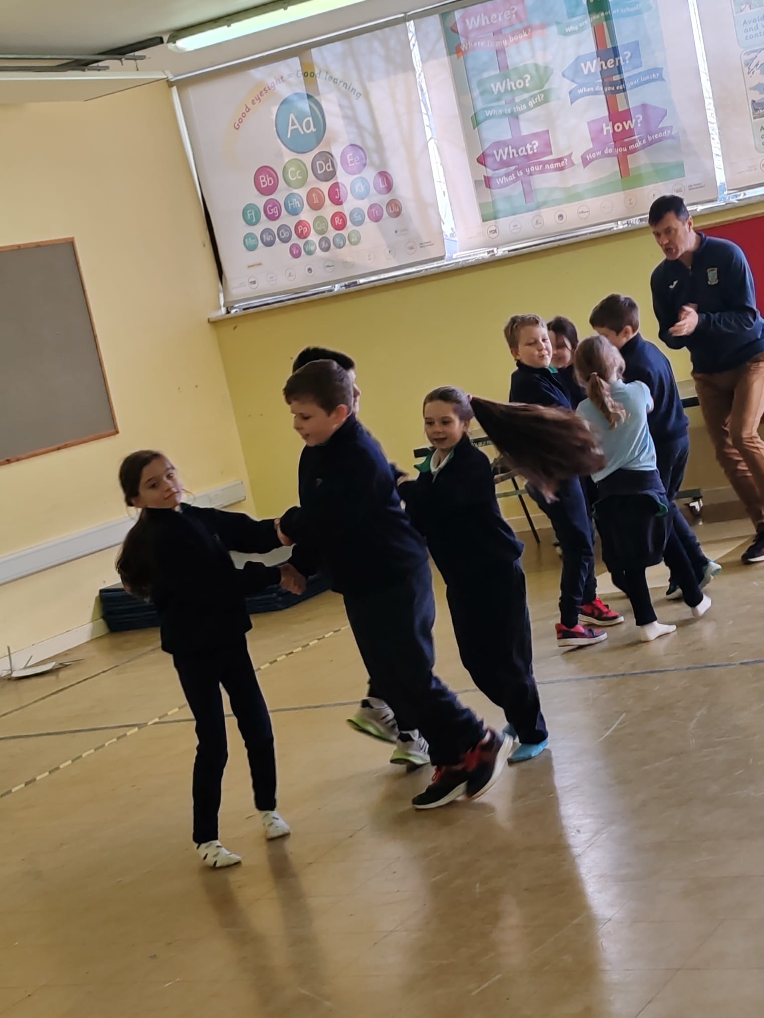 First and Second Class were very fortunate to have the wonderful experience of being taught some traditional dance steps by well known dancer Jonathon Kelliher, Director of Siamsa Tíre in Tralee.