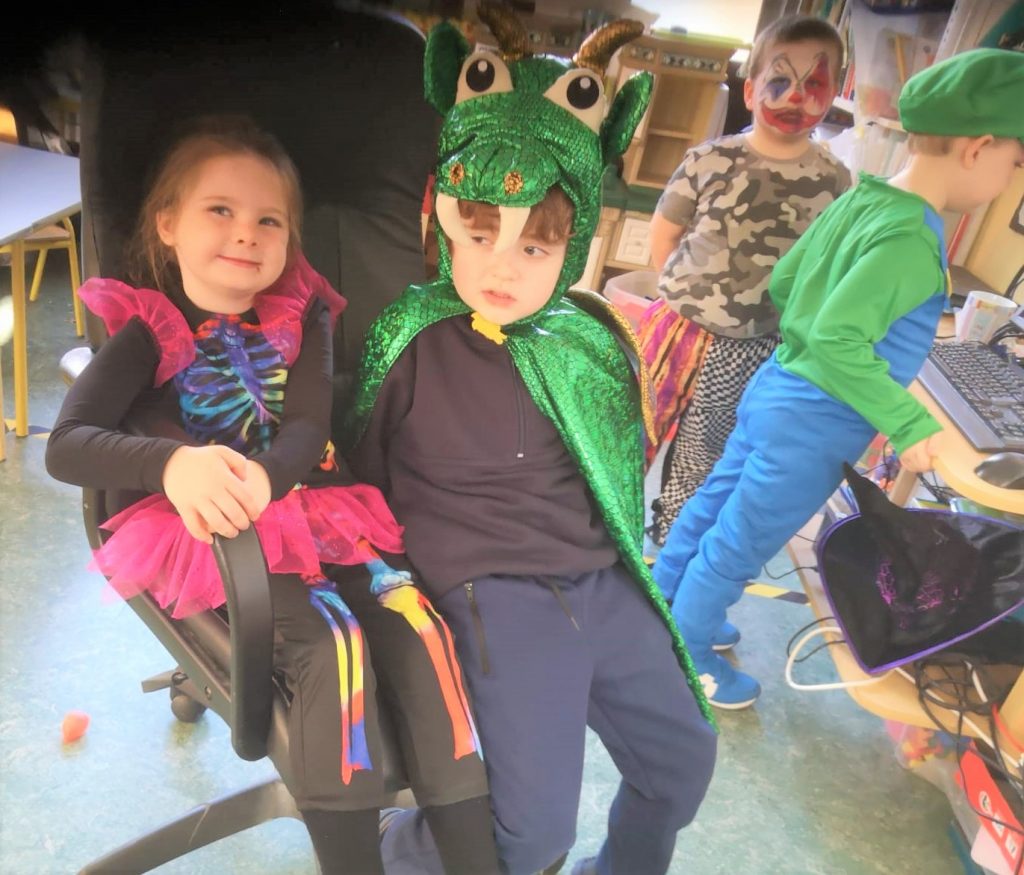 Junior Infants had a wonderful day on Friday. All the boys and girls were dressed in beautiful costumes. We played ‘Blind Man’s Buff’, ‘Pin the tail on the donkey’, ‘Musical Statues’ and ‘Musical Chairs’. We watched a film about a boy who was scared of Halloween and of course had some treats!