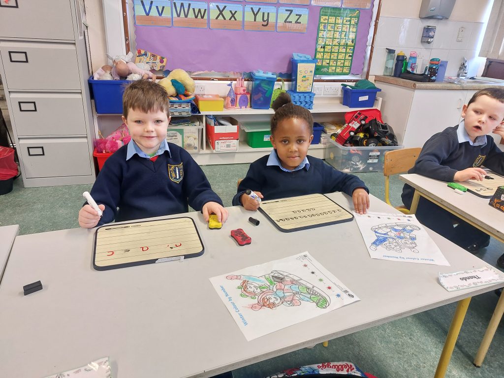 Junior Infants – Handwriting April 1, 2025 Here are photos of our wonderful Junior Infants practicing their letter formation skills.