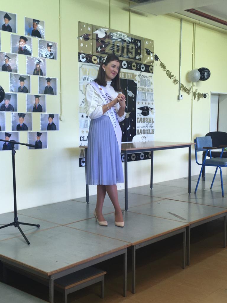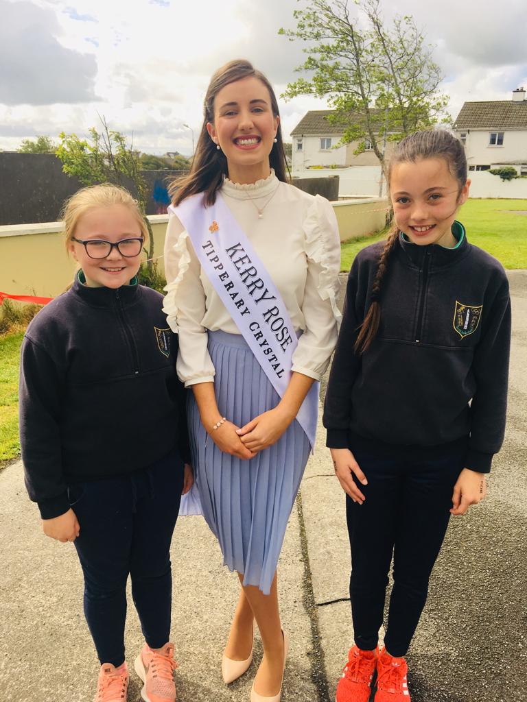 On Thursday, June 20th Ballyduff National School had the privilege of a visit from Kerry Rose Sally-Ann Leahy. It is a great honour for the parish of Ballyduff and Causeway to have a local girl representing Kerry in the Rose of Tralee International Festival in August 2019. Sally Ann was greeted by two pupils of Ballyduff National School who have had the opportunity to have been rosebuds at the Rose of Tralee contest in the past; Sophia Burns and Keeley McCabe.