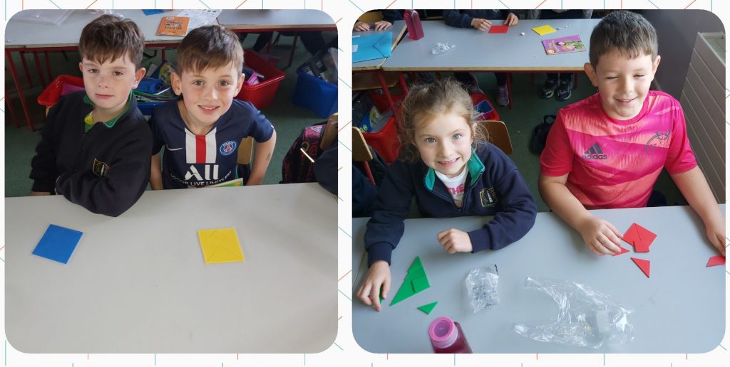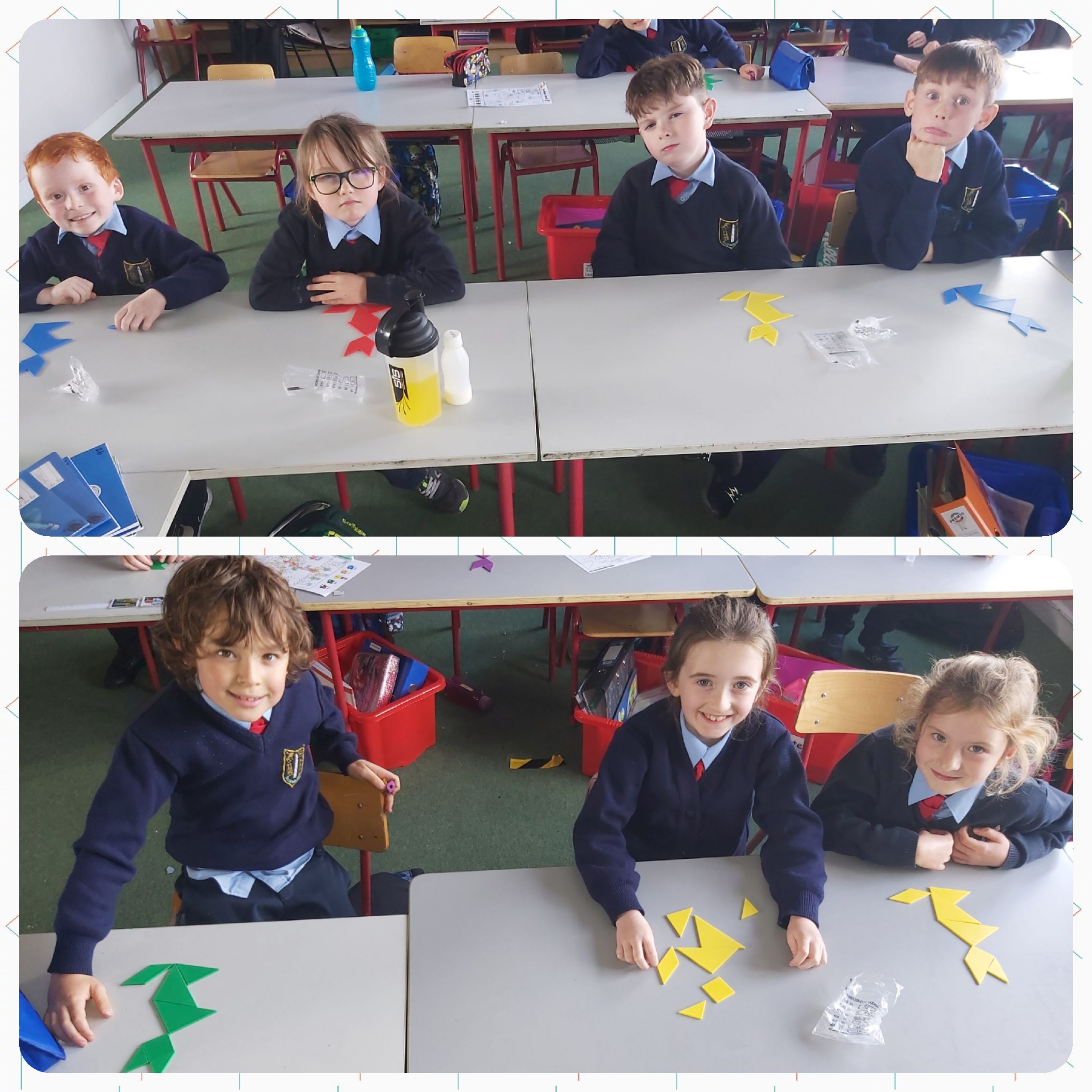 Maths Week – 1st & 2nd October 20, 2020 First and Second were super busy during Maths Week. They had a fun afternoon solving Tangram puzzles. They also participated in the maths problem of the day. Below are some photos of the pupils busy solving their tangrams.