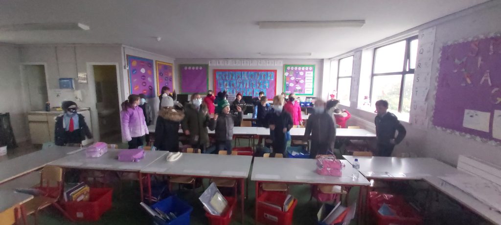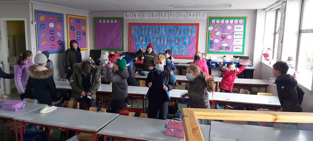 Movement breaks – Rang 1 & 2 April 25, 2022 Here are some photos of Rang 1 agus 2 being active in the classroom. They especially enjoy dancing using the guided dance videos on Go Noodle.