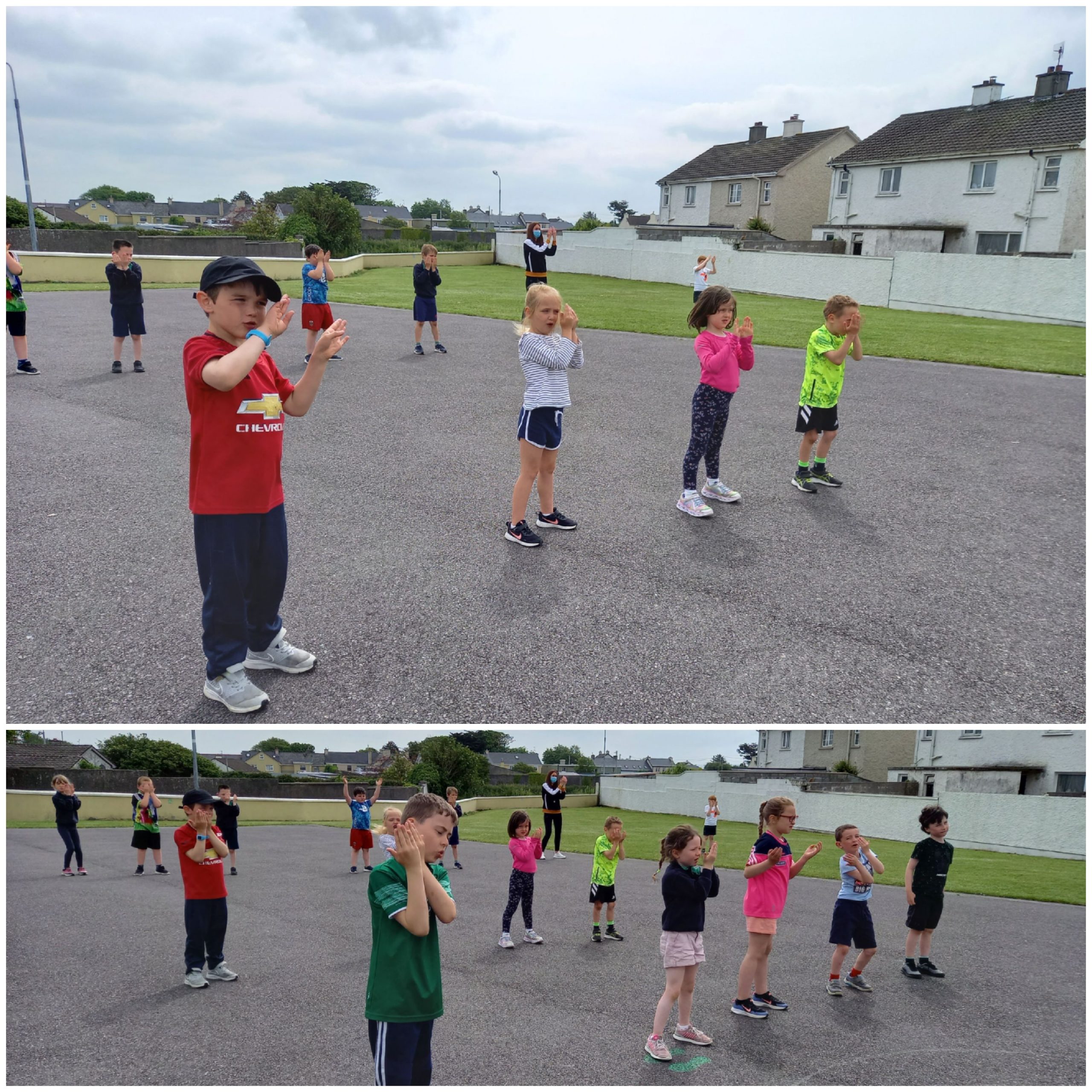 Zumba Instructor Padraig O’Mahony was on hand for the day and each class got a session with Padraig. The Happy Fitness Guy, Ray Lally, of RTÉ Today Show fame, gave a fitness session to each class, which went down a real treat. School staff then organised activities, games, and races with their respective classes. The older classes went to the Sport’s Field and the Ball Wall and had a very enjoyable time up there, we are very lucky to have access to this excellent facility.