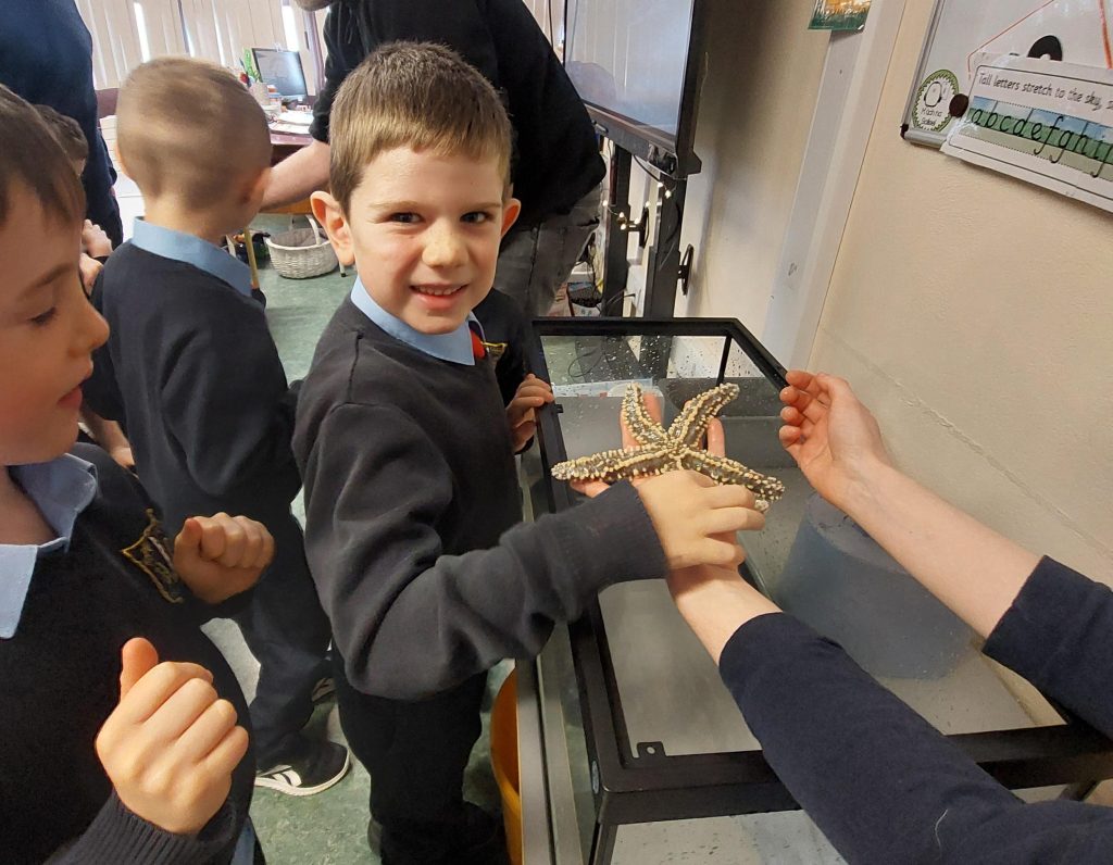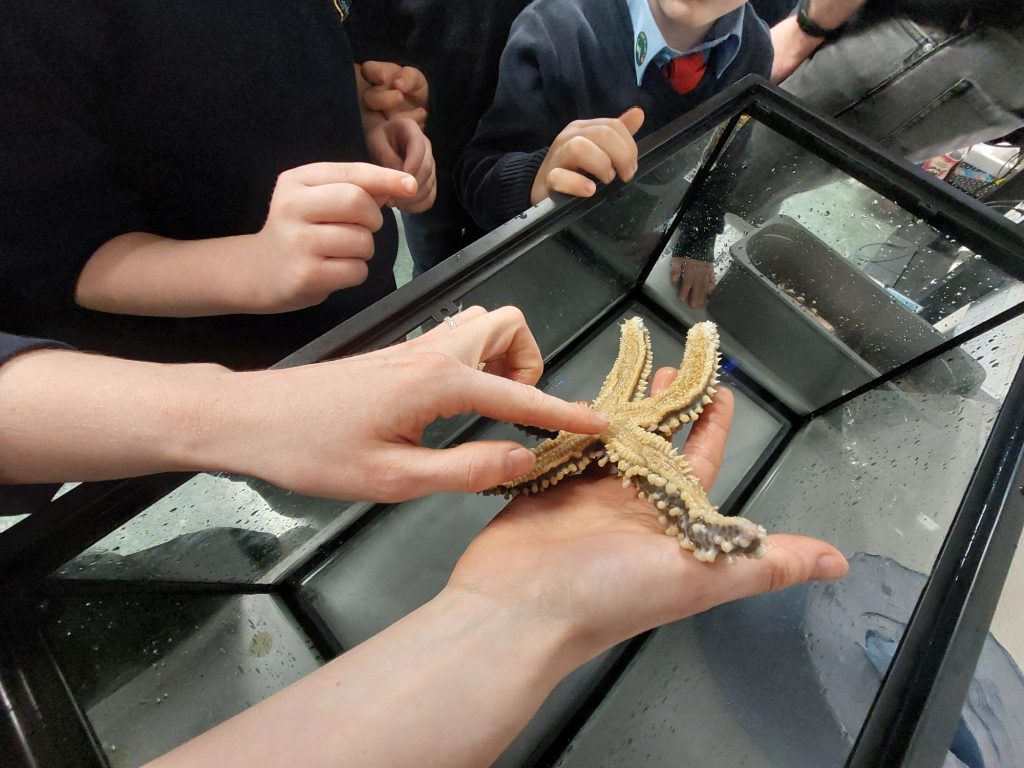 As part of Dingle Ocean World’s commitment to giving back to the community, they gave a free visit from their Education Team to engage students directly in their classroom. The session focused on native Irish animals, keystone species, and our conservation work. They brought a mobile touch tank with native species, such as starfish and spider crabs, for hands-on learning and children got the opportunity to touch these creatures while learning about them.